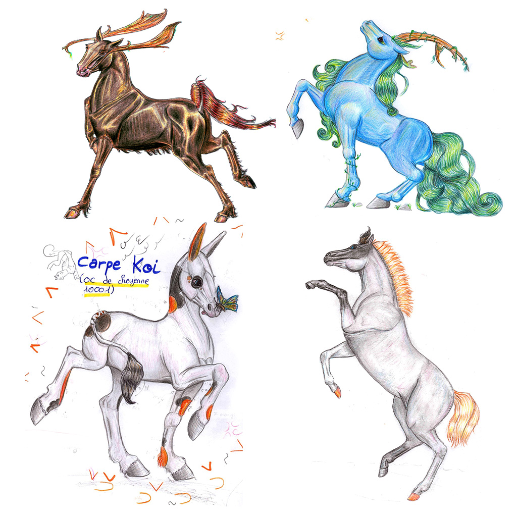 Pendant mes années lycée 2013-2015 (14-17 ans), je me suis prise de passion pour le dessin de chevaux dans le cadre de concours de dessin sur le forum du jeu Equideow. Je dessinais déjà depuis petite quelques dessins au crayon et ai voulu m’essayer au digital painting à la souris tout d’abord puis à la tablette graphique. J’ai commencé avec le logiciel de retouche d’image gratuit Gimp 2.