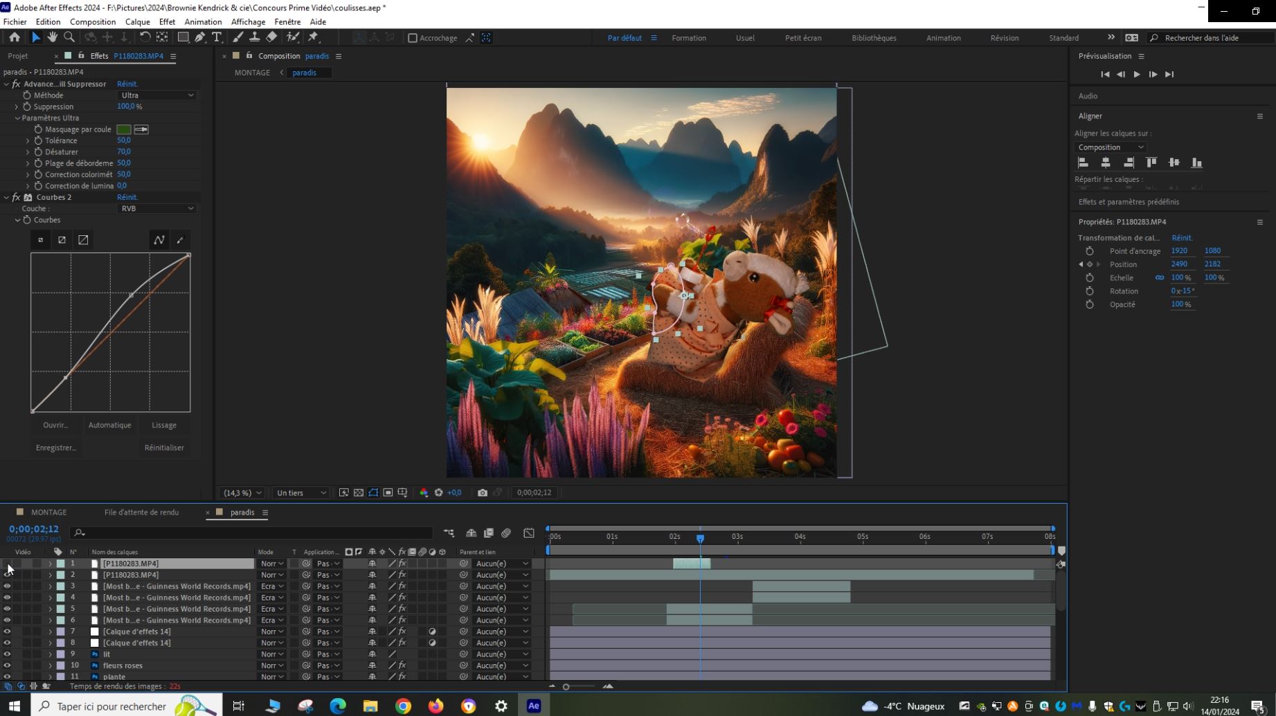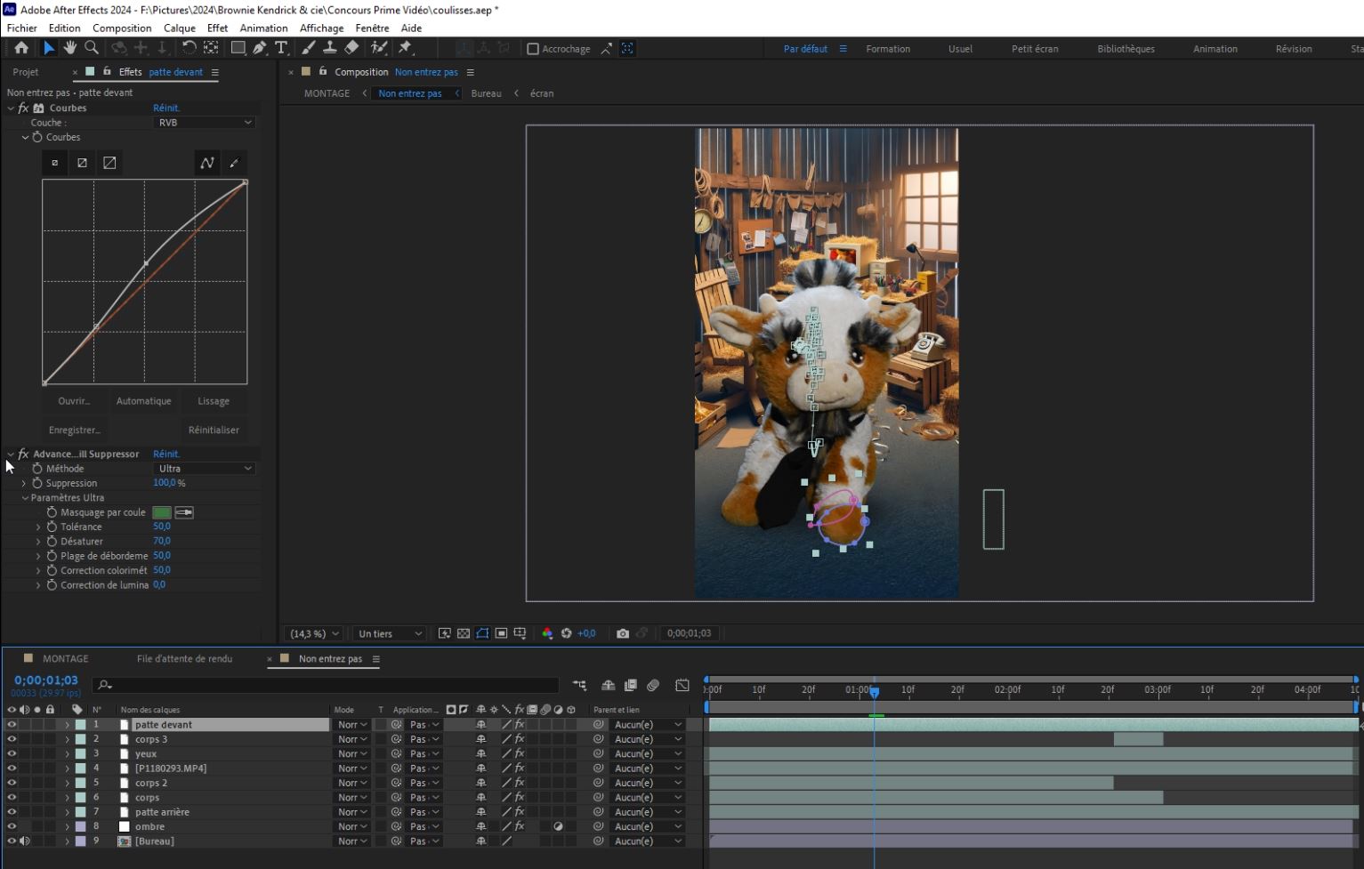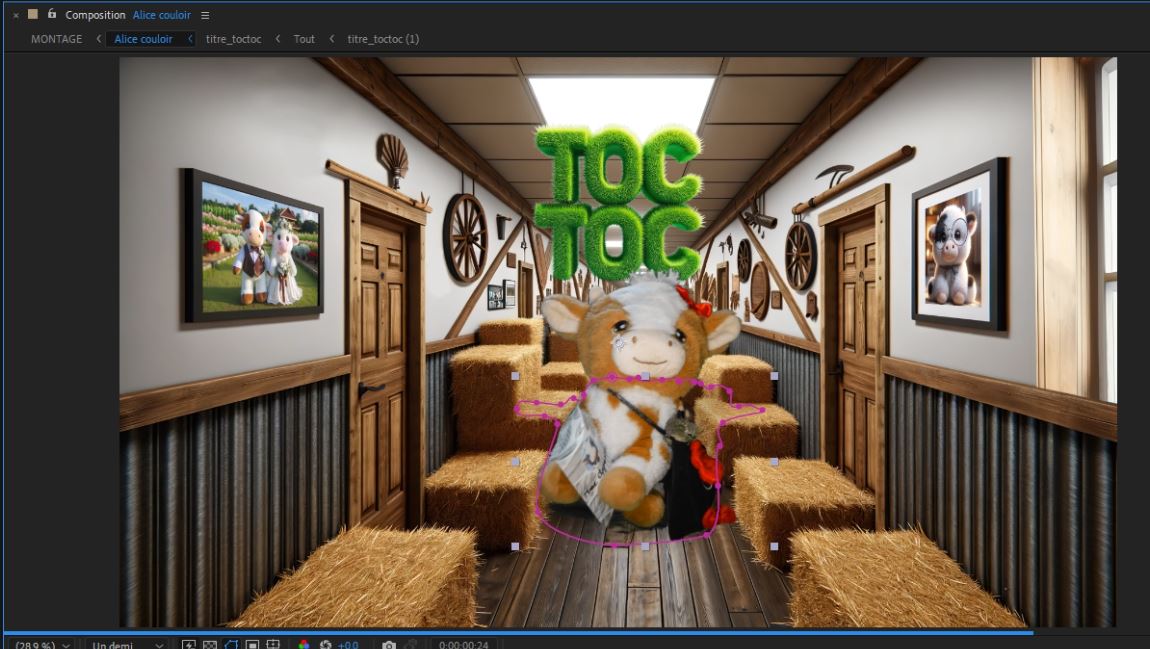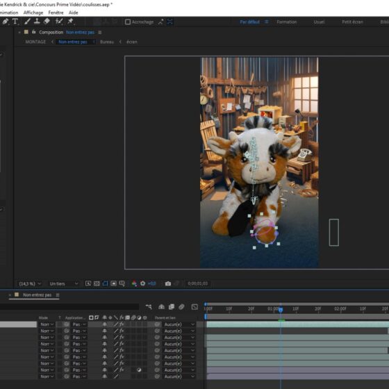 Ma participation a nécessité pas mal d’heures de travail, réalisées en parallèle de mon travail à temps plein en une semaine. Le résultat est une courte vidéo, diffusée sur TikTok. J’ai utilisé un fond vert puis suis passée en rotoscopie Adobe After Effects (qui rend au final plus propre). Pour les décors j’ai fait de nombreux tests IA pour gagner du temps et je ai beaucoup modifié les images à la main, fusionnées entre elles et rendues uniformes entre elles . Un vrai défi sous contrainte de temps. Je vois donc plusieurs défauts mais le timing était trop serré pour les corriger (concours non gagné). Lien TikTok : https://vm.tiktok.com/ZGe62LJ3h/